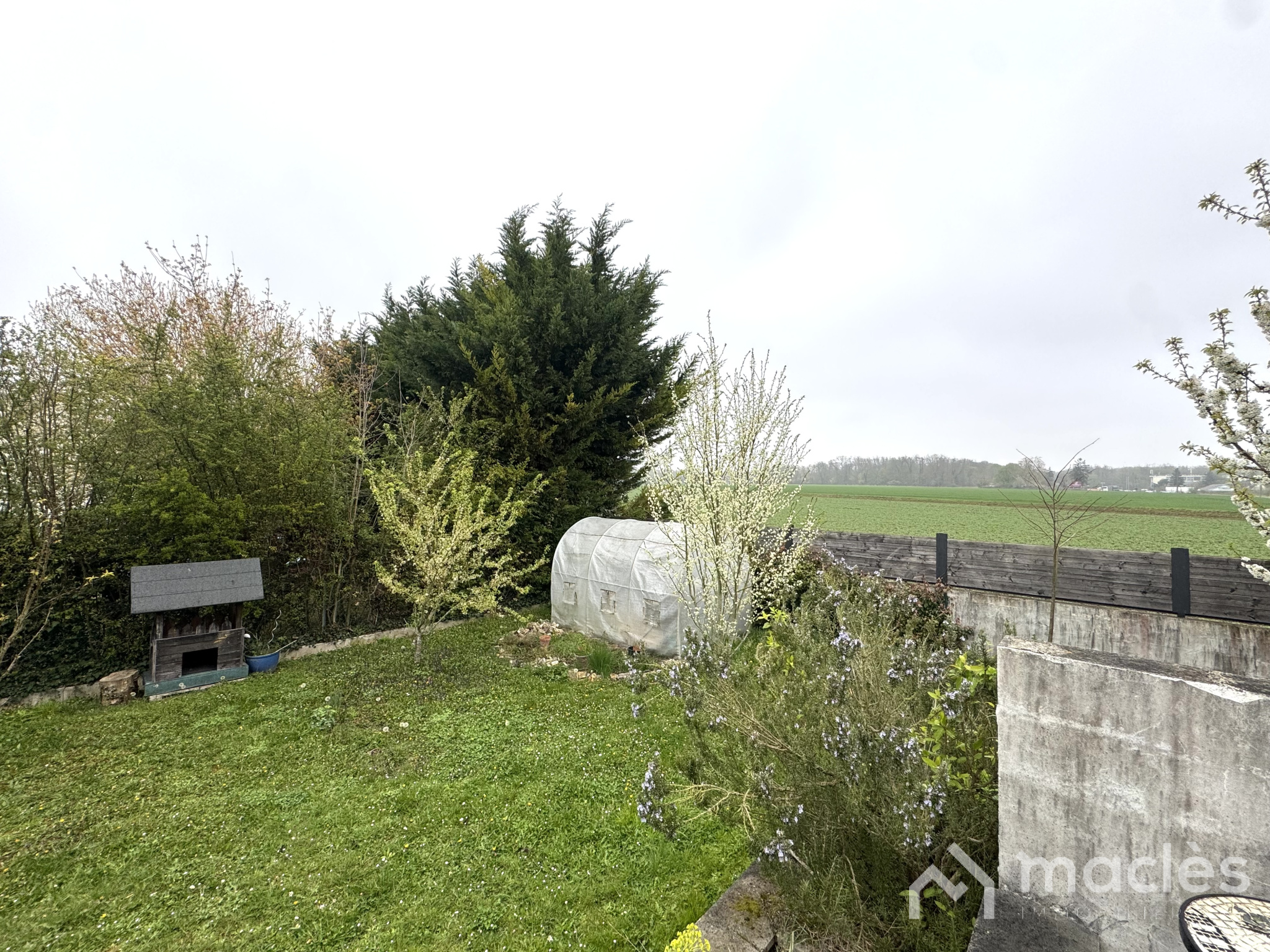 À l’extérieur, profitez d’un terrain agréable avec une vue dégagée sur les champs, pour des moments de détente en toute tranquillité.