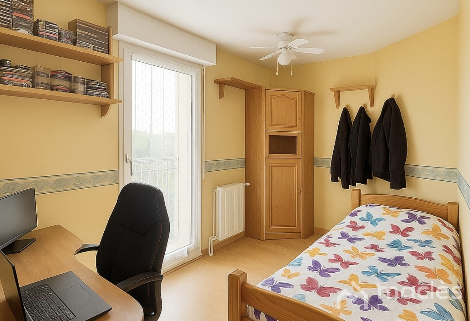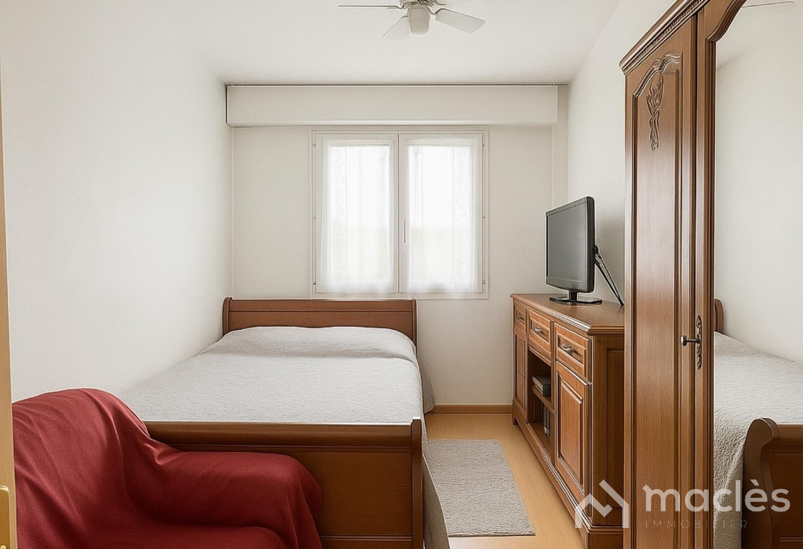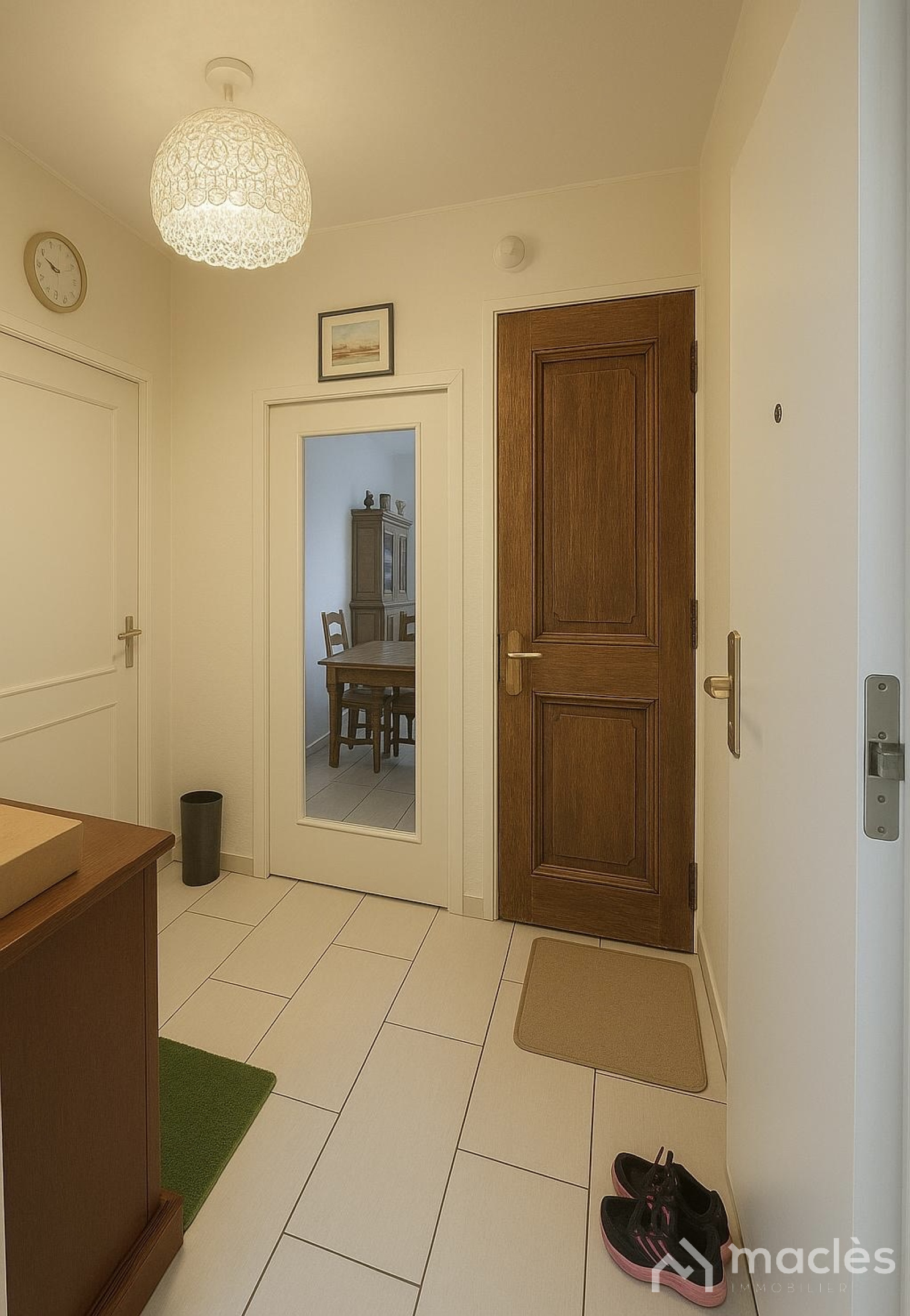 L’appartement se compose d'une entrée avec deux grands placards de rangement intégrés, de trois chambres lumineuses, d’une salle d’eau et d'un WC séparé.