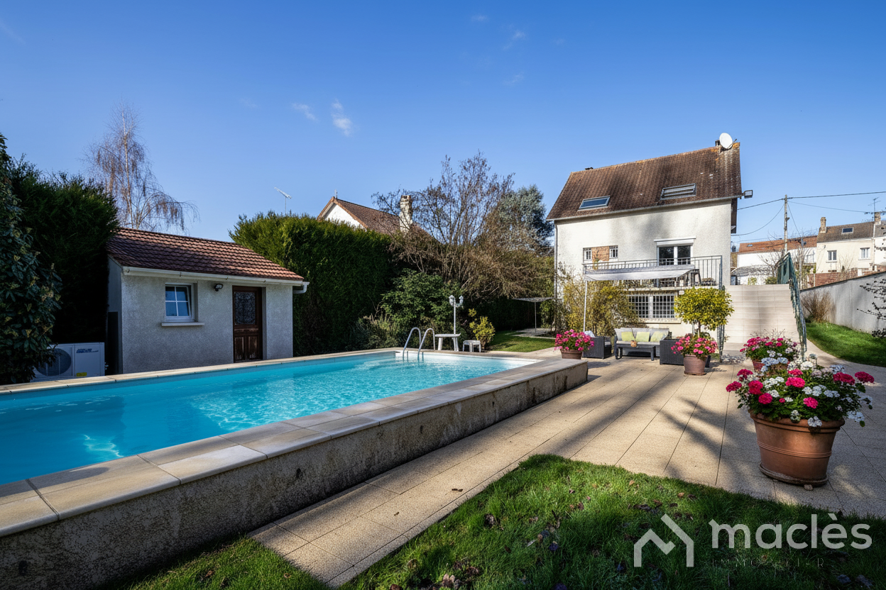 En exclusivité chez Macles Immobilier, découvrez cette charmante maison familiale implantée sur un magnifique terrain arboré de plus de 2300 m². Ici, vous profitez d’un véritable esprit campagne tout en restant en ville — un cadre idéal pour les amoureux de la nature.