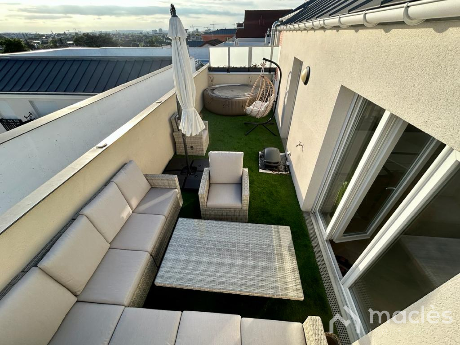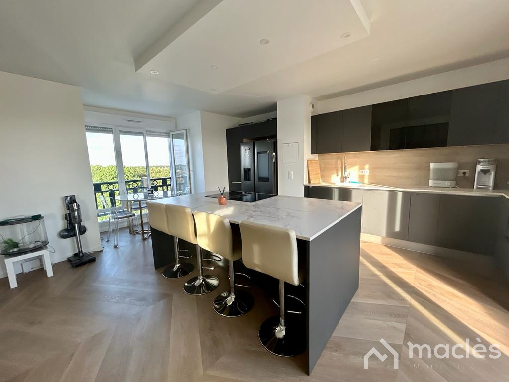 MACLES à le plaisir de vous présenter en exclusivité ce magnifique appartement duplex 4 pièces, idéalement situé dans la charmante commune de Blanc Mesnil. Cette résidence moderne, construite en 2019, offre un cadre de vie agréable et est proche des écoles, de la gare et des commerces. Situé au 4ème étage avec ascenseur, ce duplex vous offre un agencement parfait pour votre confort. Au rez-de-chaussée, vous serez accueillis par un couloir spacieux menant à une élégante salle de bain avec lavabo double vasque, un WC séparé. De plus, vous trouverez trois chambres lumineuses, chacune donnant sur un balcon privé, offrant ainsi un espace de détente en plein air. À l'étage supérieur, vous découvrirez une cuisine ouverte, aménagée et équipée, offrant un espace idéal pour préparer de délicieux repas en famille ou entre amis. Le séjour adjacent vous invite à vous détendre et à profiter de moments conviviaux. Une salle d'eau supplémentaire avec WC est également disponible à cet étage. La cerise sur le gâteau est une superbe terrasse offrant une vue imprenable sur les monuments historiques, où vous pourrez vous relaxer et profiter de moments privilégiés en plein air. Deux places de parking sont incluses pour faciliter votre quotidien. Ce bien immobilier ne nécessite aucun travaux, vous pourrez emménager en toute tranquillité. De plus, la commune de Blanc Mesnil est en plein essor avec l'arrivée du métro et le développement constant de ses infrastructures, ce qui en fait un investissement prometteur pour l'avenir. Ne manquez pas cette occasion unique de devenir propriétaire de ce superbe duplex 4 pièces à Blanc Mesnil. Contactez moi dès maintenant pour organiser une visite et laissez vous séduire par tout ce qu'il a à offrir.