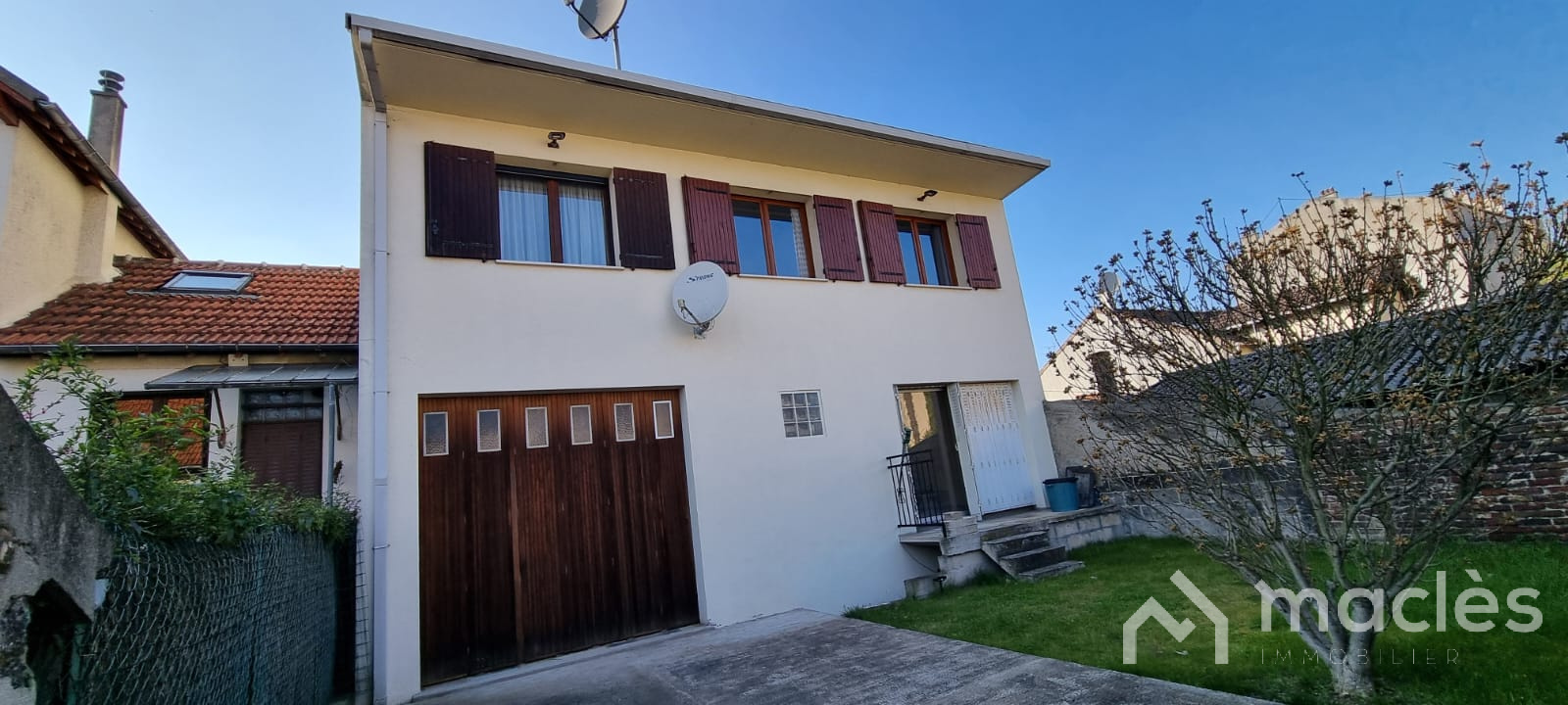 À l'extérieur, le grand jardin offre un espace de verdure exceptionnel, propice aux jeux des enfants ou à la création d'un potager. Le grand garage complète ce bien, offrant un espace sécurisé pour vos véhicules ou pour un atelier.